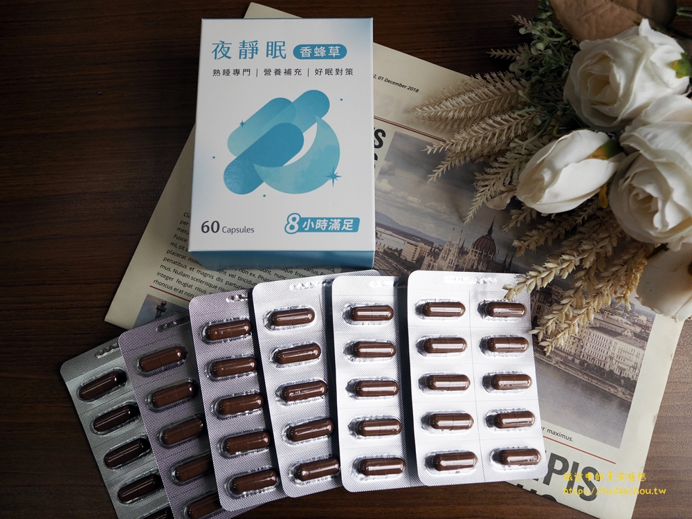 直到最近與閨蜜好友聚餐時送給我一盒含有香蜂草的晚安王國品牌「夜靜眠」,回家連吃了好幾天、每天2顆,